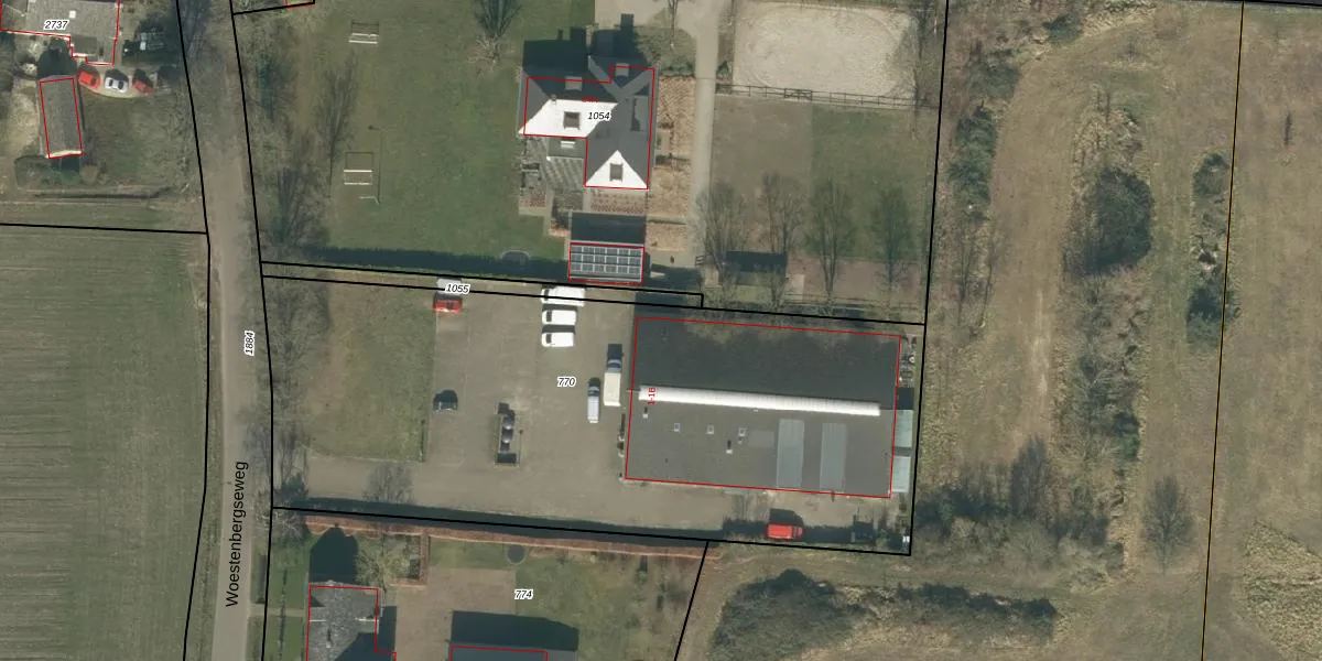 Het perceel waarop Woestenbergseweg 1-B staat heeft een oppervlakte van 3420 m². Dit is een zeer groot perceel. De perceeloppervlakte wordt geregistreerd door het Kadaster. Gedetailleerde informatie over de maten van dit perceel kunt u vinden in het rapport Kadastrale kaart met maatvoering van Woestenbergseweg 1-B.