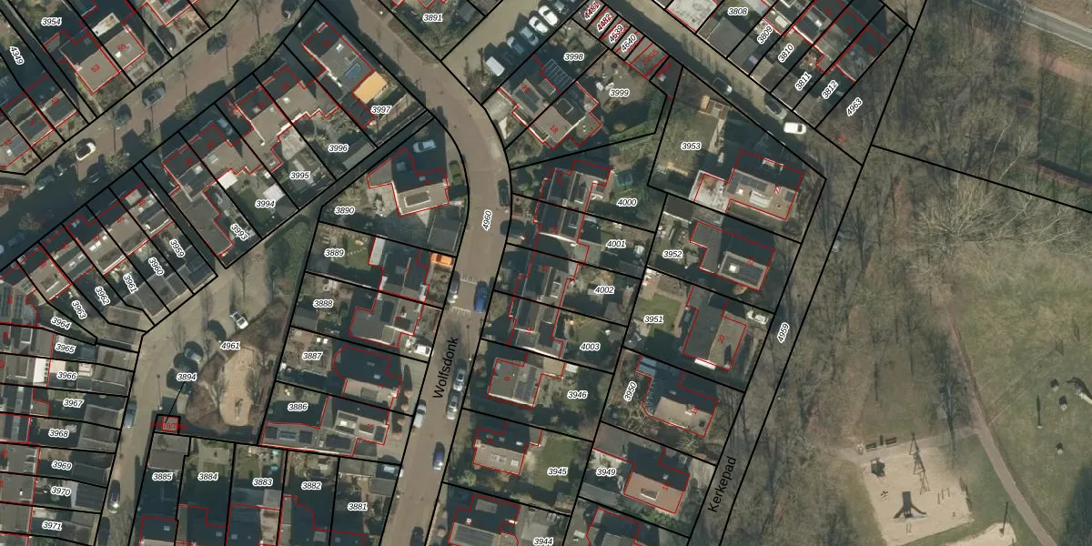 Gebruik de zoekbalk of klik op een perceel voor informatie over de adressen binnen dit perceel.