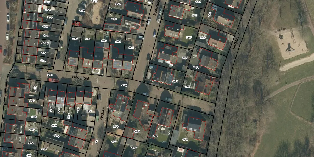 Gebruik de zoekbalk of klik op een perceel voor informatie over de adressen binnen dit perceel.