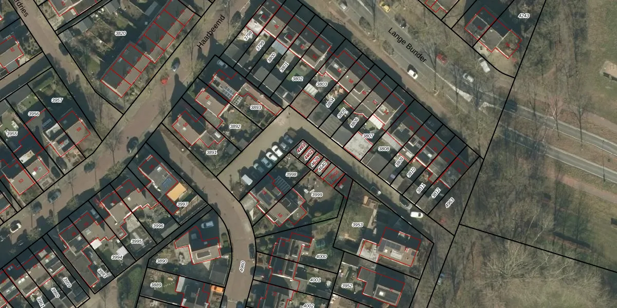 Gebruik de zoekbalk of klik op een perceel voor informatie over de adressen binnen dit perceel.