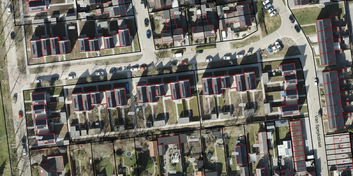 Het perceel waarop Abel Tasmanstraat 14 staat heeft een oppervlakte van 2500 m². Dit is een zeer groot perceel. De perceeloppervlakte wordt geregistreerd door het Kadaster. Gedetailleerde informatie over de maten van dit perceel kunt u vinden in het rapport Kadastrale kaart met maatvoering van Abel Tasmanstraat 14.