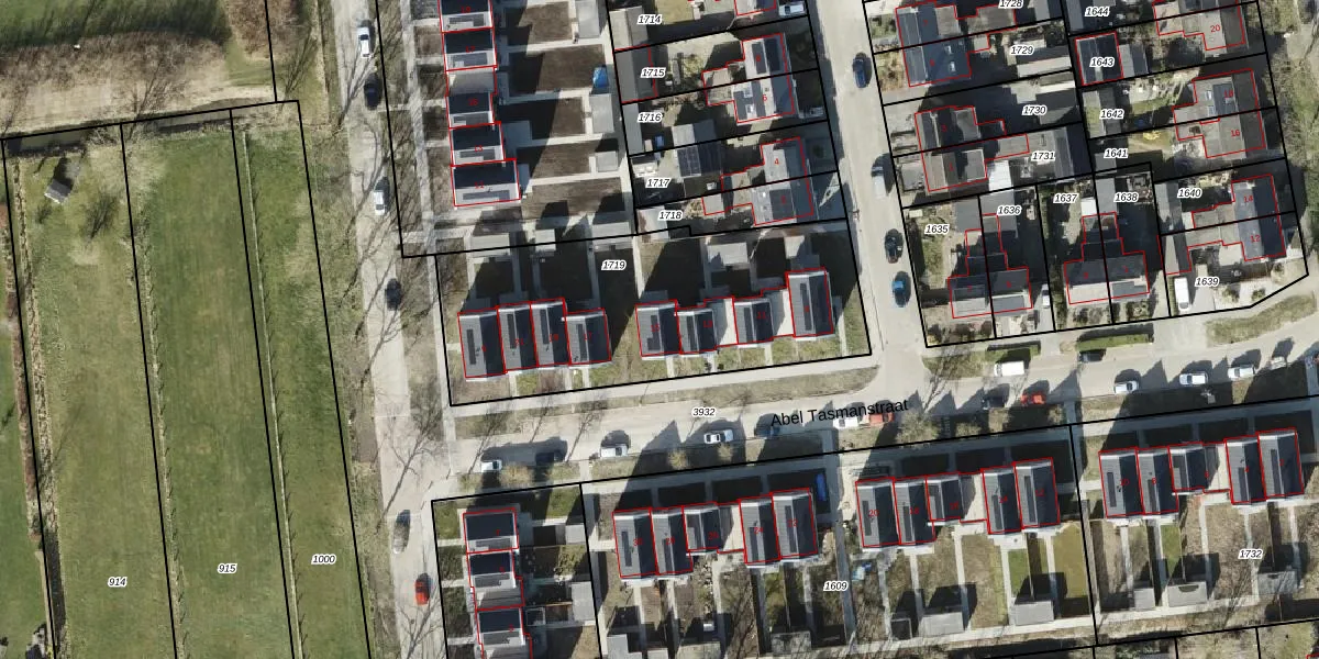 Het perceel waarop Abel Tasmanstraat 15 staat heeft een oppervlakte van 1369 m². Dit is een zeer groot perceel. De perceeloppervlakte wordt geregistreerd door het Kadaster. Gedetailleerde informatie over de maten van dit perceel kunt u vinden in het rapport Kadastrale kaart met maatvoering van Abel Tasmanstraat 15.