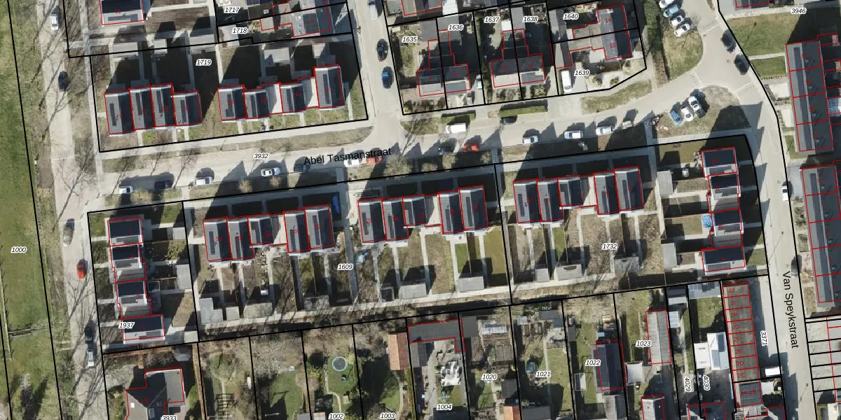 Het perceel waarop Abel Tasmanstraat 16 staat heeft een oppervlakte van 2500 m². Dit is een zeer groot perceel. De perceeloppervlakte wordt geregistreerd door het Kadaster. Gedetailleerde informatie over de maten van dit perceel kunt u vinden in het rapport Kadastrale kaart met maatvoering van Abel Tasmanstraat 16.