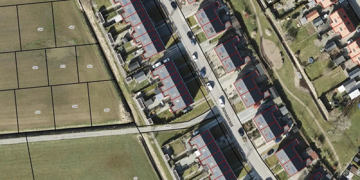 Het perceel waarop Almastraat 26 staat heeft een oppervlakte van 1,7 ha. Dit is een zeer groot perceel. De perceeloppervlakte wordt geregistreerd door het Kadaster. Gedetailleerde informatie over de maten van dit perceel kunt u vinden in het rapport Kadastrale kaart met maatvoering van Almastraat 26.