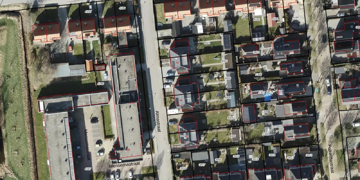 Het perceel waarop Almastraat 51 staat heeft een oppervlakte van 436 m². Dit is een groot perceel. De perceeloppervlakte wordt geregistreerd door het Kadaster. Gedetailleerde informatie over de maten van dit perceel kunt u vinden in het rapport Kadastrale kaart met maatvoering van Almastraat 51.