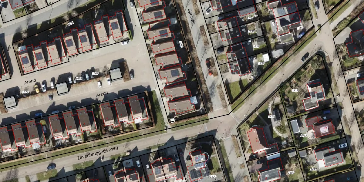Het perceel waarop Arend 3 staat heeft een oppervlakte van 1670 m². Dit is een zeer groot perceel. De perceeloppervlakte wordt geregistreerd door het Kadaster. Gedetailleerde informatie over de maten van dit perceel kunt u vinden in het rapport Kadastrale kaart met maatvoering van Arend 3.