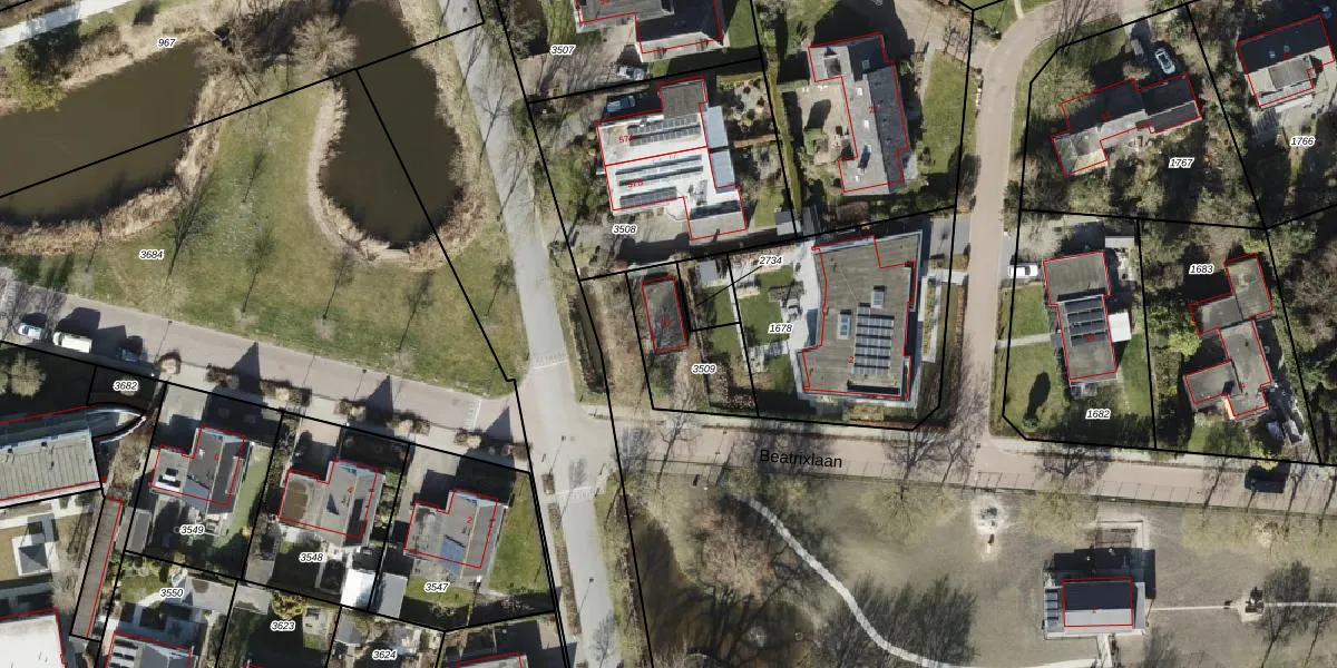 Gebruik de zoekbalk of klik op een perceel voor informatie over de adressen binnen dit perceel.