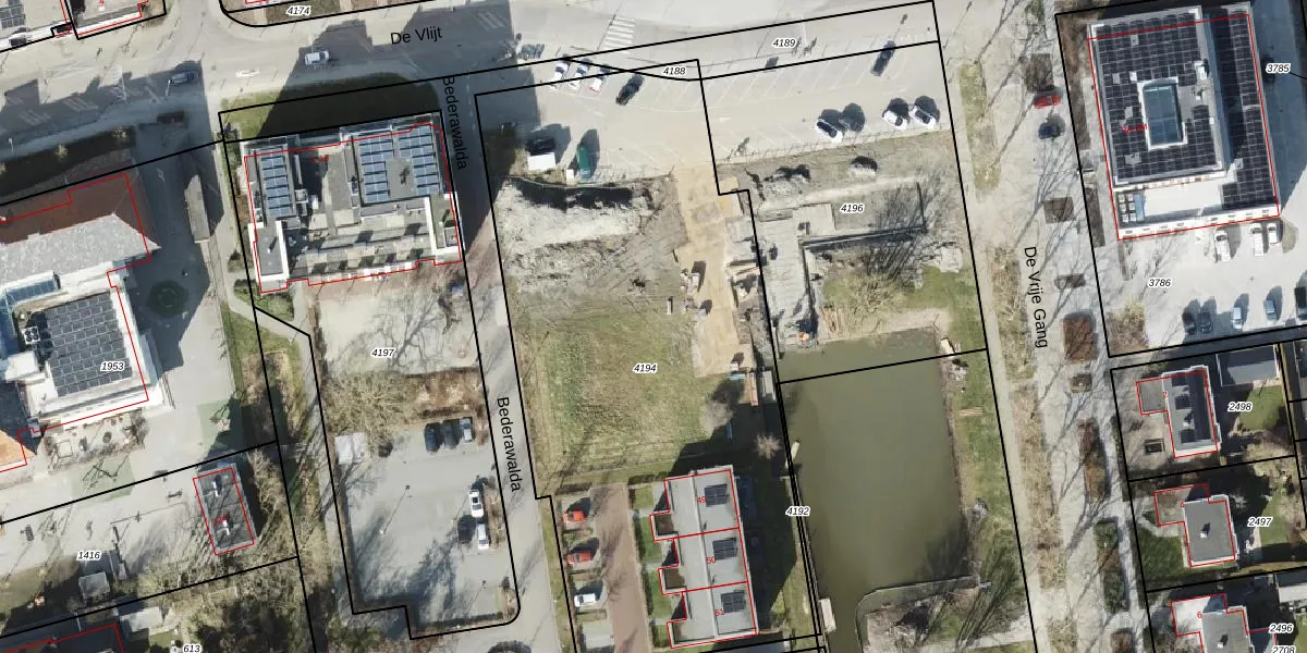 Bederawalda 45 is gelegen op kadastraal perceel BDM00K4194. Deze kadastrale aanduiding is uniek en wordt gebruikt door het Kadaster om eigendomsrechten en andere zakelijke rechten vast te leggen. Het perceel maakt onderdeel uit van de kadastrale gemeente Bedum.