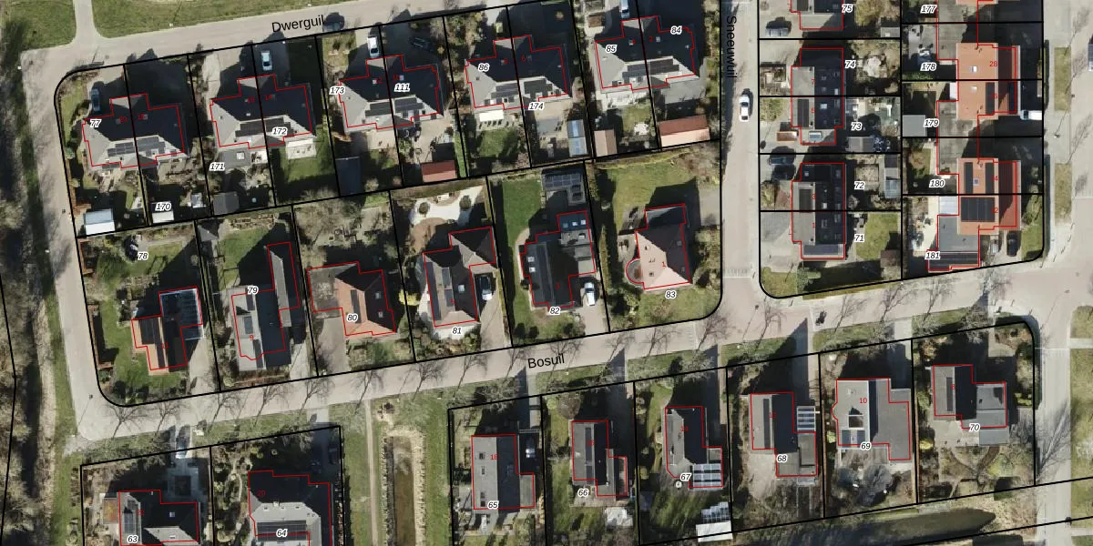 Het perceel waarop Bosuil 3 staat heeft een oppervlakte van 576 m². Dit is een groot perceel. De perceeloppervlakte wordt geregistreerd door het Kadaster. Gedetailleerde informatie over de maten van dit perceel kunt u vinden in het rapport Kadastrale kaart met maatvoering van Bosuil 3.