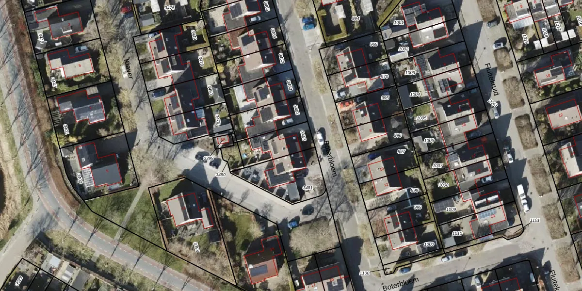 Gebruik de zoekbalk of klik op een perceel voor informatie over de adressen binnen dit perceel.