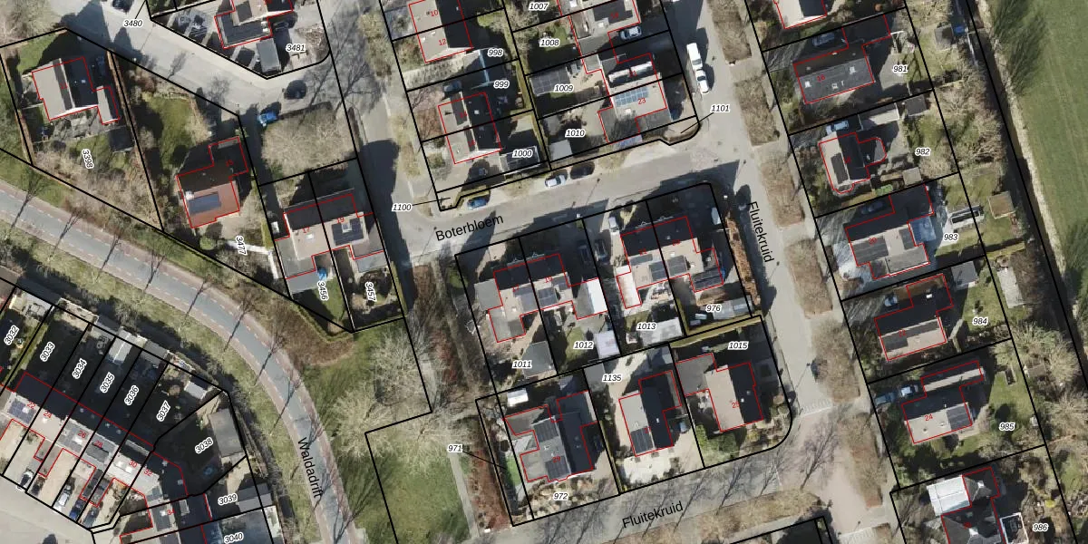 Het perceel waarop Boterbloem 19 staat heeft een oppervlakte van 322 m². Dit is een groot perceel. De perceeloppervlakte wordt geregistreerd door het Kadaster. Gedetailleerde informatie over de maten van dit perceel kunt u vinden in het rapport Kadastrale kaart met maatvoering van Boterbloem 19.