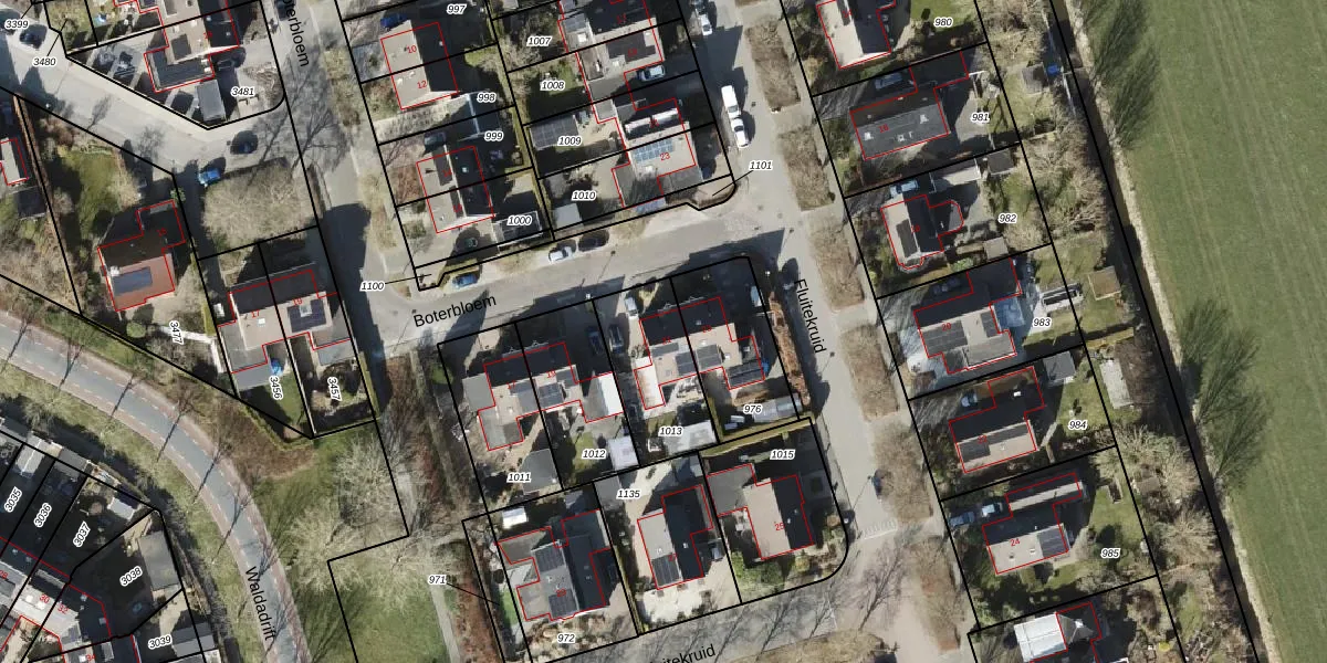 Het perceel waarop Boterbloem 21 staat heeft een oppervlakte van 322 m². Dit is een groot perceel. De perceeloppervlakte wordt geregistreerd door het Kadaster. Gedetailleerde informatie over de maten van dit perceel kunt u vinden in het rapport Kadastrale kaart met maatvoering van Boterbloem 21.
