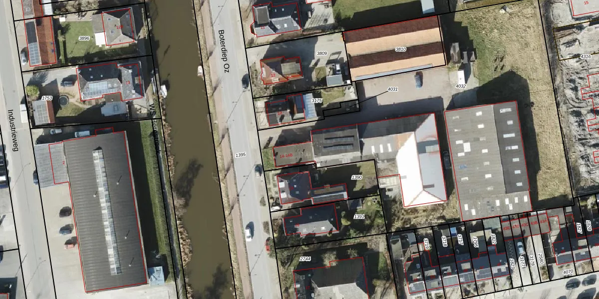 Het perceel waarop Boterdiep Oz 14 staat heeft een oppervlakte van 4455 m². Dit is een zeer groot perceel. De perceeloppervlakte wordt geregistreerd door het Kadaster. Gedetailleerde informatie over de maten van dit perceel kunt u vinden in het rapport Kadastrale kaart met maatvoering van Boterdiep Oz 14.