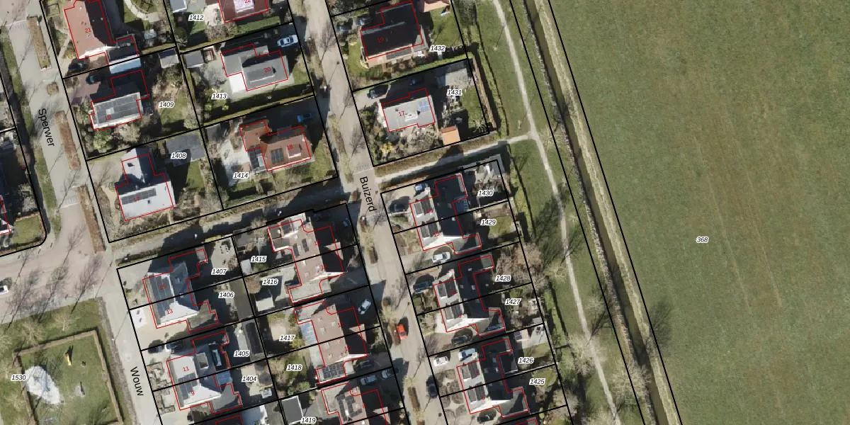 Het perceel waarop Buizerd 15 staat heeft een oppervlakte van 283 m². Dit is een middelgroot perceel. De perceeloppervlakte wordt geregistreerd door het Kadaster. Gedetailleerde informatie over de maten van dit perceel kunt u vinden in het rapport Kadastrale kaart met maatvoering van Buizerd 15.