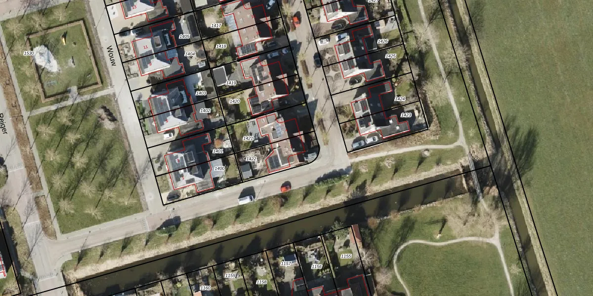 Gebruik de zoekbalk of klik op een perceel voor informatie over de adressen binnen dit perceel.