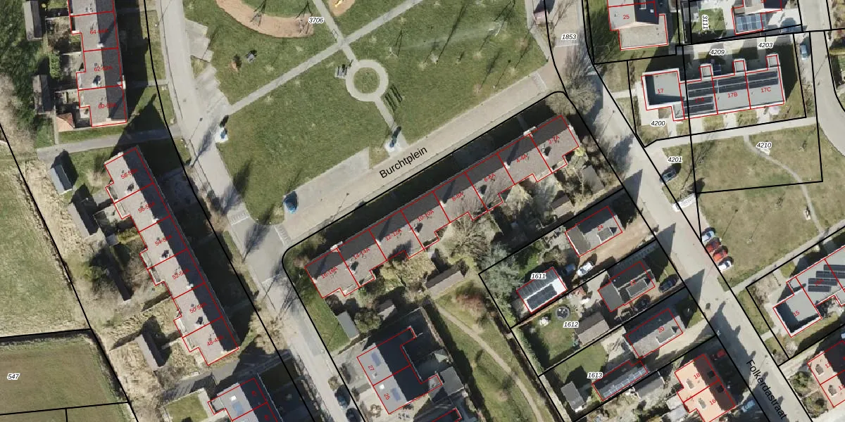 Het perceel waarop Burchtplein 10 staat heeft een oppervlakte van 1,5 ha. Dit is een zeer groot perceel. De perceeloppervlakte wordt geregistreerd door het Kadaster. Gedetailleerde informatie over de maten van dit perceel kunt u vinden in het rapport Kadastrale kaart met maatvoering van Burchtplein 10.