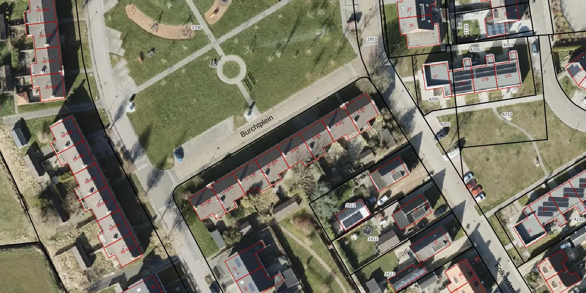 Het perceel waarop Burchtplein 8 staat heeft een oppervlakte van 1,5 ha. Dit is een zeer groot perceel. De perceeloppervlakte wordt geregistreerd door het Kadaster. Gedetailleerde informatie over de maten van dit perceel kunt u vinden in het rapport Kadastrale kaart met maatvoering van Burchtplein 8.