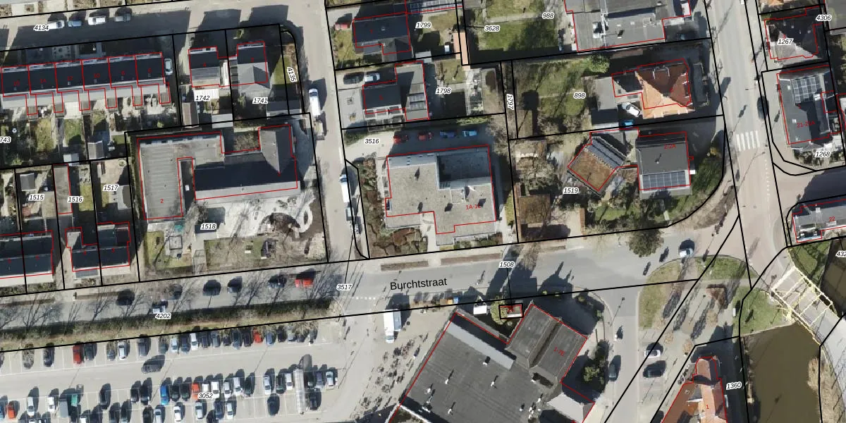 Het perceel waarop Burchtstraat 1-H staat heeft een oppervlakte van 1083 m². Dit is een zeer groot perceel. De perceeloppervlakte wordt geregistreerd door het Kadaster. Gedetailleerde informatie over de maten van dit perceel kunt u vinden in het rapport Kadastrale kaart met maatvoering van Burchtstraat 1-H.
