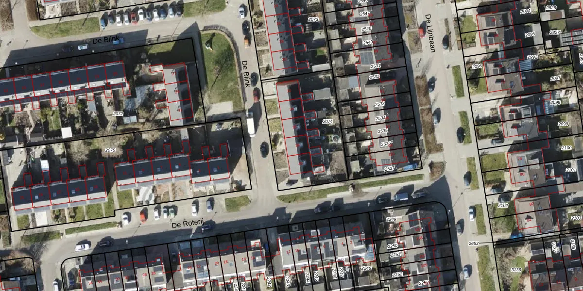 Het perceel waarop De Blink 38 staat heeft een oppervlakte van 951 m². Dit is een groot perceel. De perceeloppervlakte wordt geregistreerd door het Kadaster. Gedetailleerde informatie over de maten van dit perceel kunt u vinden in het rapport Kadastrale kaart met maatvoering van De Blink 38.