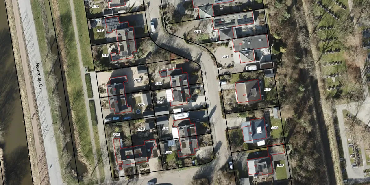 Gebruik de zoekbalk of klik op een perceel voor informatie over de adressen binnen dit perceel.