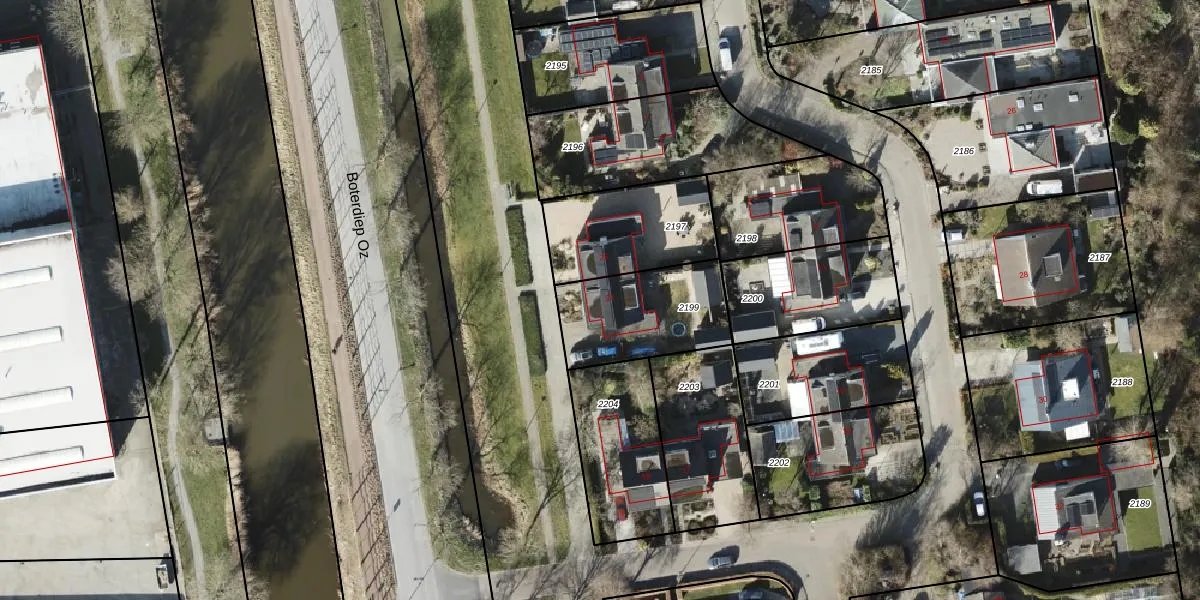 Het adres ligt op het perceel BDM00-K-2199, dat zich in de kadastrale gemeente Bedum bevindt. Het perceel is kleiner dan gemiddeld in Bedum. Het perceel is 400 m² groot, terwijl het gemiddelde ligt op 7145,01 m². Het grootste perceel in de kadastrale gemeente is 66,7 ha. Het kleinste perceel heeft een oppervlakte van 0 m². Er zijn geen andere adressen aanwezig op het perceel. In de Basisregistratie Kadaster (BRK) werden de grenzen van het perceel geregistreerd op 22-10-2010.