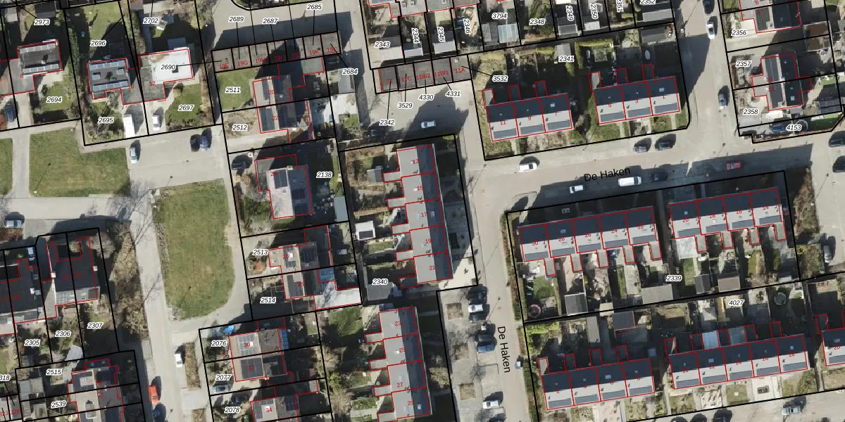Het perceel waarop De Haken 17 staat heeft een oppervlakte van 2635 m². Dit is een zeer groot perceel. De perceeloppervlakte wordt geregistreerd door het Kadaster. Gedetailleerde informatie over de maten van dit perceel kunt u vinden in het rapport Kadastrale kaart met maatvoering van De Haken 17.