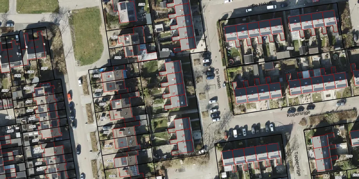 Het perceel waarop De Haken 27 staat heeft een oppervlakte van 2635 m². Dit is een zeer groot perceel. De perceeloppervlakte wordt geregistreerd door het Kadaster. Gedetailleerde informatie over de maten van dit perceel kunt u vinden in het rapport Kadastrale kaart met maatvoering van De Haken 27.