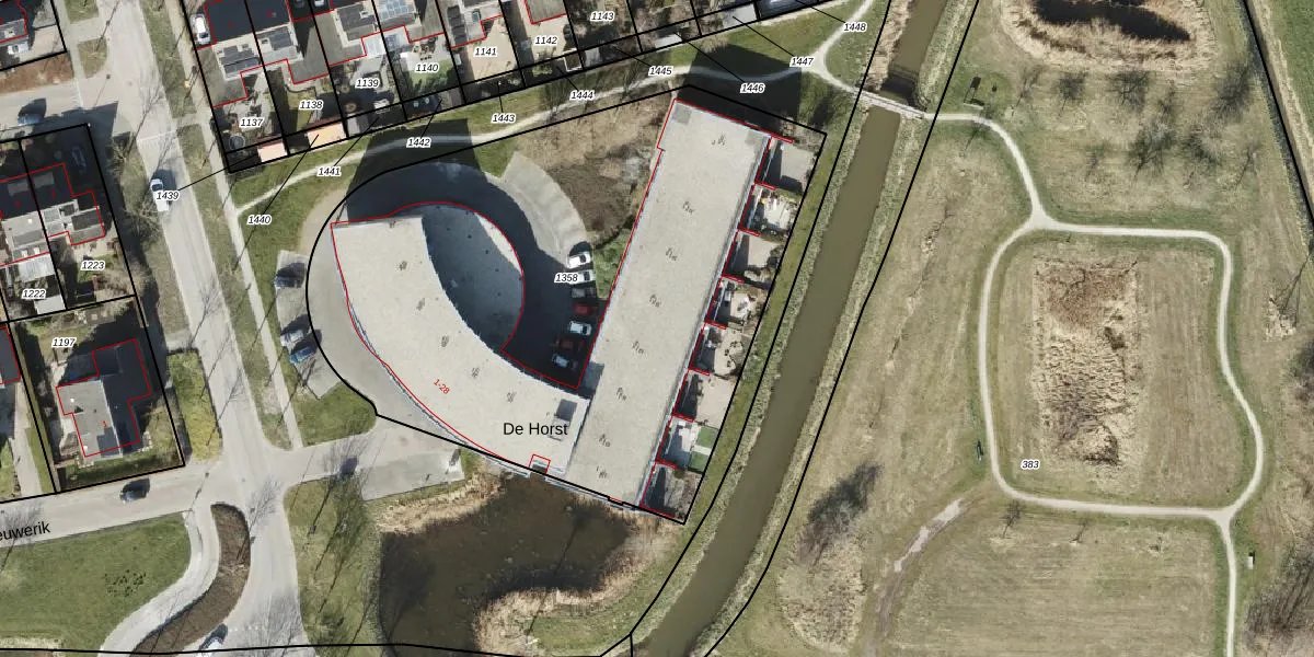 Het perceel waarop De Horst 12 staat heeft een oppervlakte van 3400 m². Dit is een zeer groot perceel. De perceeloppervlakte wordt geregistreerd door het Kadaster. Gedetailleerde informatie over de maten van dit perceel kunt u vinden in het rapport Kadastrale kaart met maatvoering van De Horst 12.