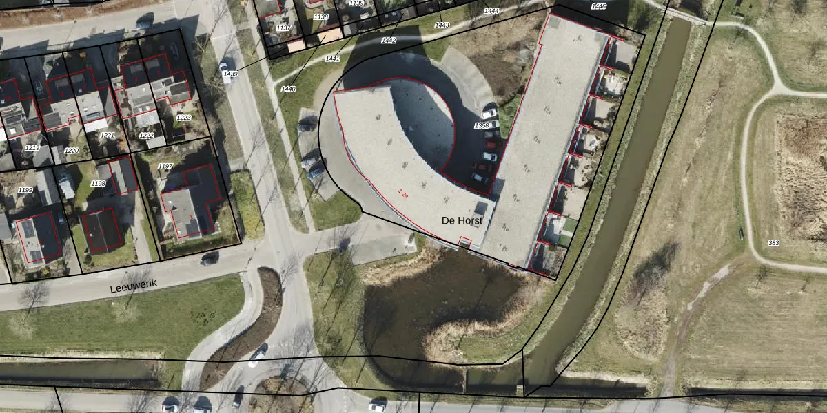 Het perceel waarop De Horst 18 staat heeft een oppervlakte van 3400 m². Dit is een zeer groot perceel. De perceeloppervlakte wordt geregistreerd door het Kadaster. Gedetailleerde informatie over de maten van dit perceel kunt u vinden in het rapport Kadastrale kaart met maatvoering van De Horst 18.