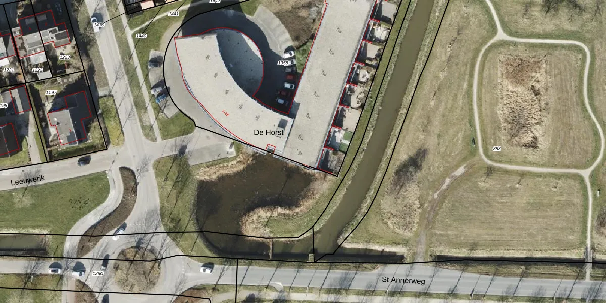 Het perceel waarop De Horst 9 staat heeft een oppervlakte van 3400 m². Dit is een zeer groot perceel. De perceeloppervlakte wordt geregistreerd door het Kadaster. Gedetailleerde informatie over de maten van dit perceel kunt u vinden in het rapport Kadastrale kaart met maatvoering van De Horst 9.