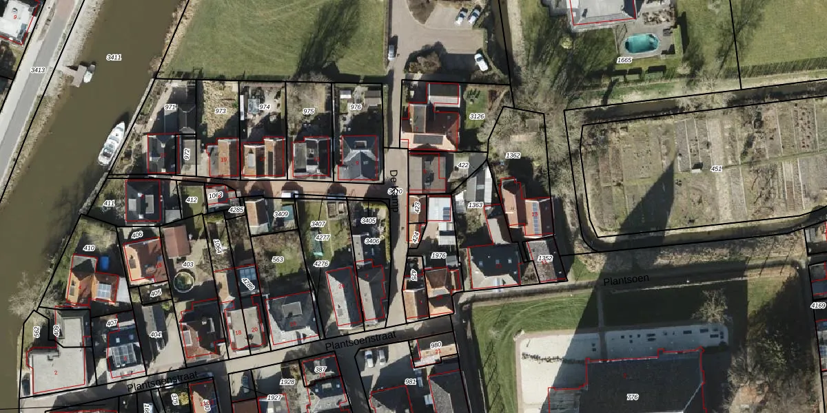 Gebruik de zoekbalk of klik op een perceel voor informatie over de adressen binnen dit perceel.