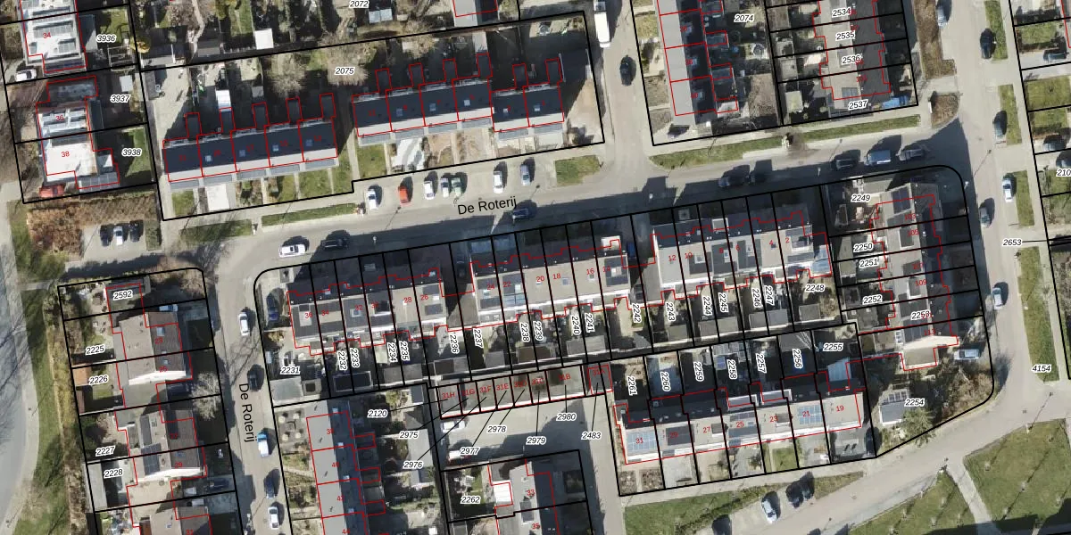 Het perceel waarop De Roterij 20 staat heeft een oppervlakte van 123 m². Dit is een middelgroot perceel. De perceeloppervlakte wordt geregistreerd door het Kadaster. Gedetailleerde informatie over de maten van dit perceel kunt u vinden in het rapport Kadastrale kaart met maatvoering van De Roterij 20.
