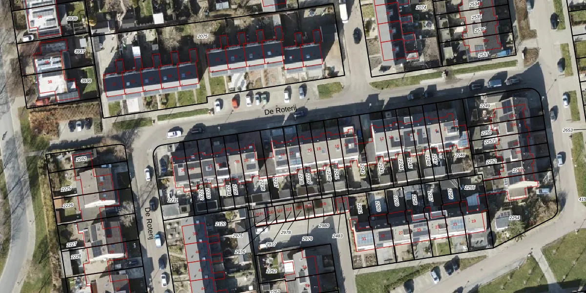Het perceel waarop De Roterij 22 staat heeft een oppervlakte van 123 m². Dit is een middelgroot perceel. De perceeloppervlakte wordt geregistreerd door het Kadaster. Gedetailleerde informatie over de maten van dit perceel kunt u vinden in het rapport Kadastrale kaart met maatvoering van De Roterij 22.