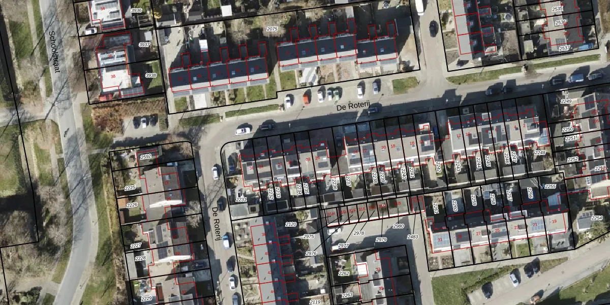 Het perceel waarop De Roterij 28 staat heeft een oppervlakte van 120 m². Dit is een middelgroot perceel. De perceeloppervlakte wordt geregistreerd door het Kadaster. Gedetailleerde informatie over de maten van dit perceel kunt u vinden in het rapport Kadastrale kaart met maatvoering van De Roterij 28.