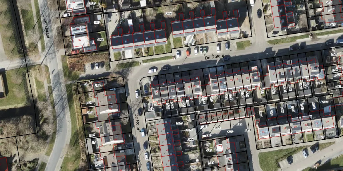 Het perceel waarop De Roterij 32 staat heeft een oppervlakte van 119 m². Dit is een middelgroot perceel. De perceeloppervlakte wordt geregistreerd door het Kadaster. Gedetailleerde informatie over de maten van dit perceel kunt u vinden in het rapport Kadastrale kaart met maatvoering van De Roterij 32.