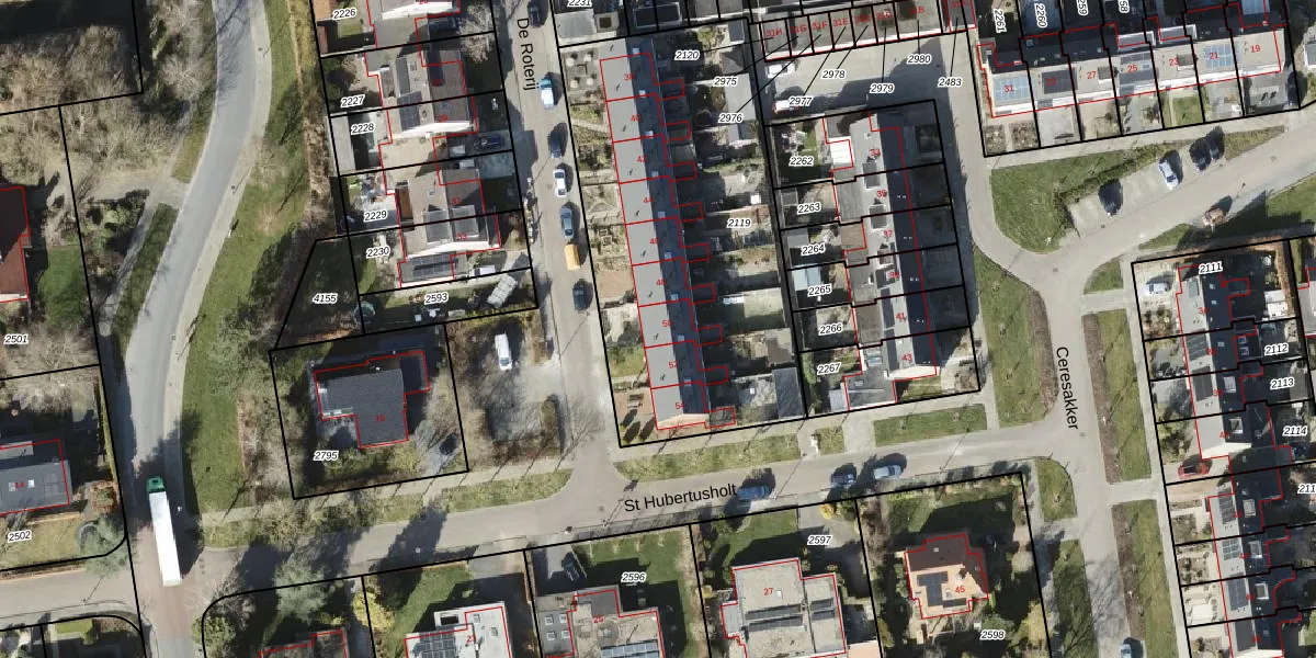 Het perceel waarop De Roterij 50 staat heeft een oppervlakte van 1782 m². Dit is een zeer groot perceel. De perceeloppervlakte wordt geregistreerd door het Kadaster. Gedetailleerde informatie over de maten van dit perceel kunt u vinden in het rapport Kadastrale kaart met maatvoering van De Roterij 50.