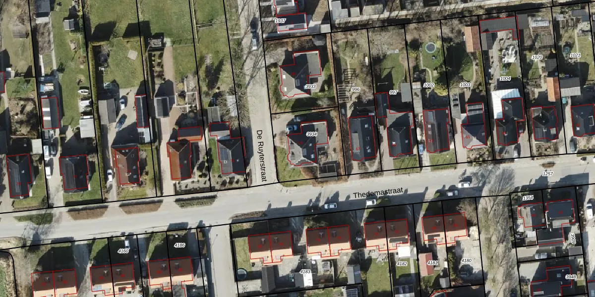 De Ruyterstraat 1-A is gelegen op kadastraal perceel BDM00K3934. Deze kadastrale aanduiding is uniek en wordt gebruikt door het Kadaster om eigendomsrechten en andere zakelijke rechten vast te leggen. Het perceel maakt onderdeel uit van de kadastrale gemeente Bedum.