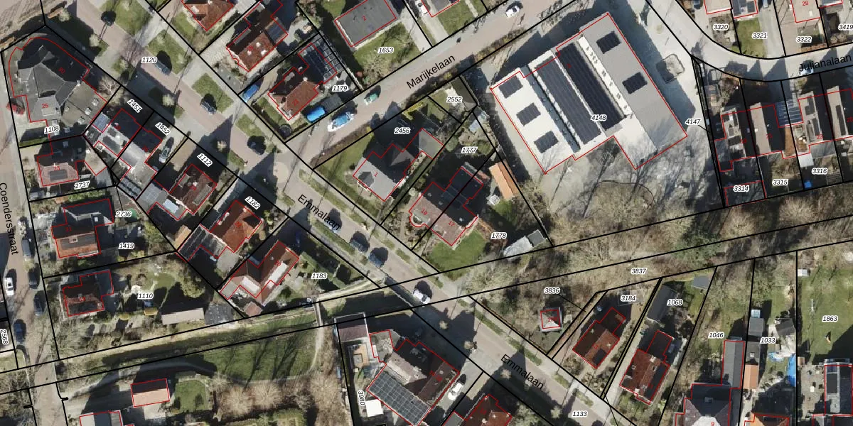 Het perceel waarop Emmalaan 19 staat heeft een oppervlakte van 317 m². Dit is een groot perceel. De perceeloppervlakte wordt geregistreerd door het Kadaster. Gedetailleerde informatie over de maten van dit perceel kunt u vinden in het rapport Kadastrale kaart met maatvoering van Emmalaan 19.
