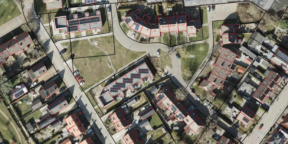 Het perceel waarop Folkerdastraat 15-D staat heeft een oppervlakte van 940 m². Dit is een groot perceel. De perceeloppervlakte wordt geregistreerd door het Kadaster. Gedetailleerde informatie over de maten van dit perceel kunt u vinden in het rapport Kadastrale kaart met maatvoering van Folkerdastraat 15-D.