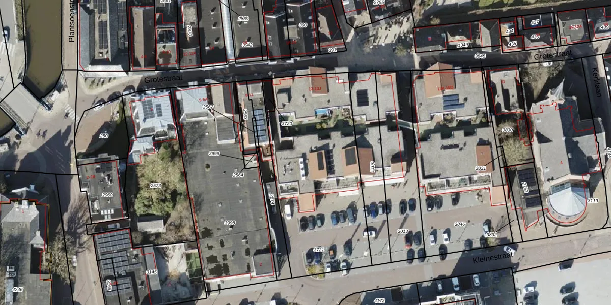Het perceel waarop Grotestraat 13-F staat heeft een oppervlakte van 1724 m². Dit is een zeer groot perceel. De perceeloppervlakte wordt geregistreerd door het Kadaster. Gedetailleerde informatie over de maten van dit perceel kunt u vinden in het rapport Kadastrale kaart met maatvoering van Grotestraat 13-F.
