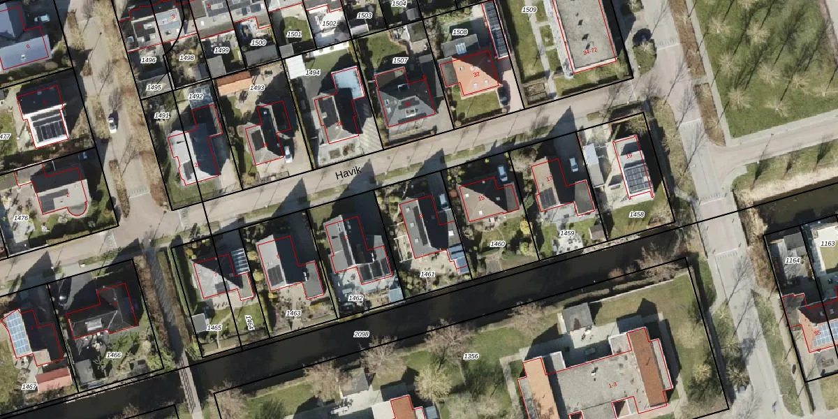 Het perceel waarop Havik 13 staat heeft een oppervlakte van 455 m². Dit is een groot perceel. De perceeloppervlakte wordt geregistreerd door het Kadaster. Gedetailleerde informatie over de maten van dit perceel kunt u vinden in het rapport Kadastrale kaart met maatvoering van Havik 13.