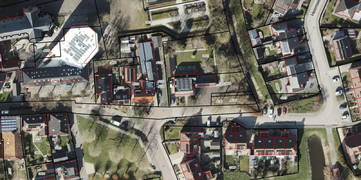 Gebruik de zoekbalk of klik op een perceel voor informatie over de adressen binnen dit perceel.