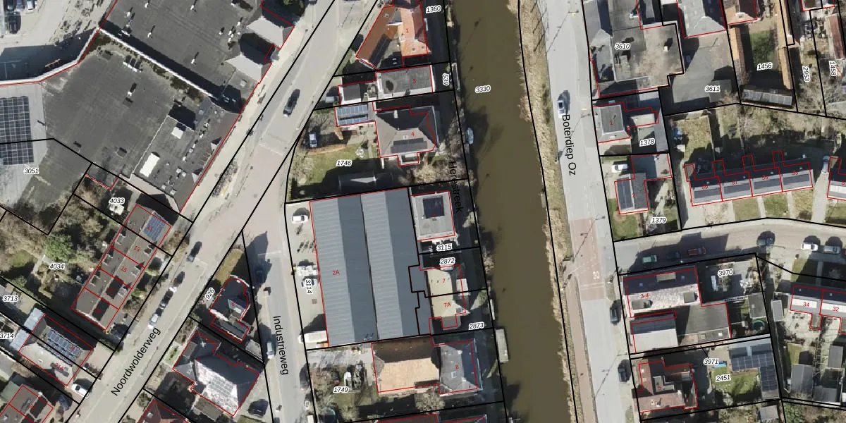 Gebruik de zoekbalk of klik op een perceel voor informatie over de adressen binnen dit perceel.