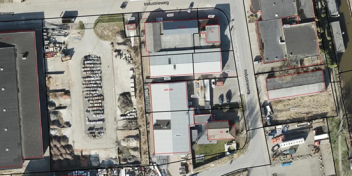 Industrieweg 18-B is gelegen op kadastraal perceel BDM00K3465. Deze kadastrale aanduiding is uniek en wordt gebruikt door het Kadaster om eigendomsrechten en andere zakelijke rechten vast te leggen. Het perceel maakt onderdeel uit van de kadastrale gemeente Bedum.