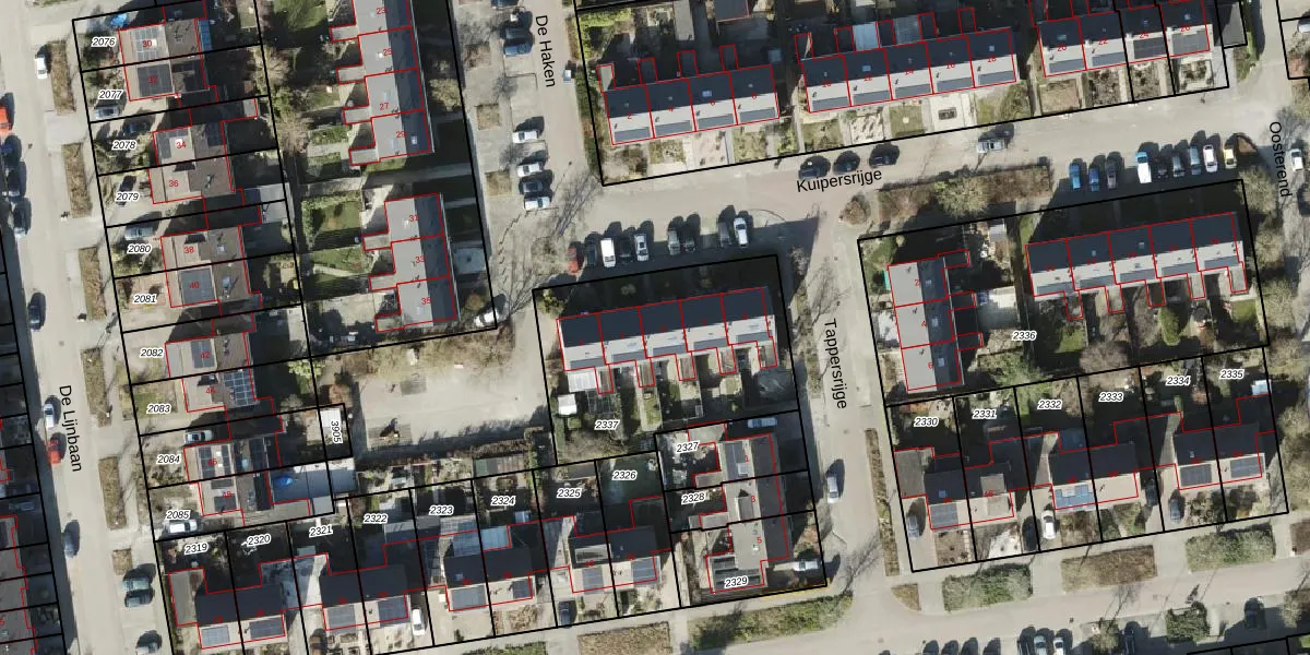 Het perceel waarop Kuipersrijge 5 staat heeft een oppervlakte van 954 m². Dit is een groot perceel. De perceeloppervlakte wordt geregistreerd door het Kadaster. Gedetailleerde informatie over de maten van dit perceel kunt u vinden in het rapport Kadastrale kaart met maatvoering van Kuipersrijge 5.