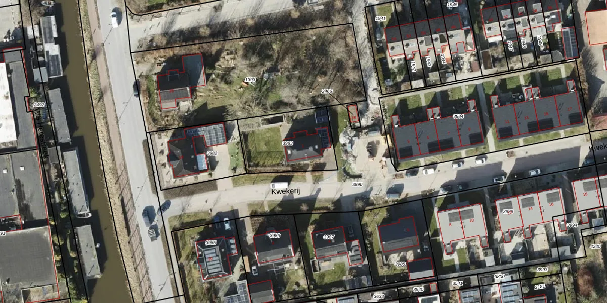 Kwekerij 1 is gelegen op kadastraal perceel BDM00K3983. Deze kadastrale aanduiding is uniek en wordt gebruikt door het Kadaster om eigendomsrechten en andere zakelijke rechten vast te leggen. Het perceel maakt onderdeel uit van de kadastrale gemeente Bedum.