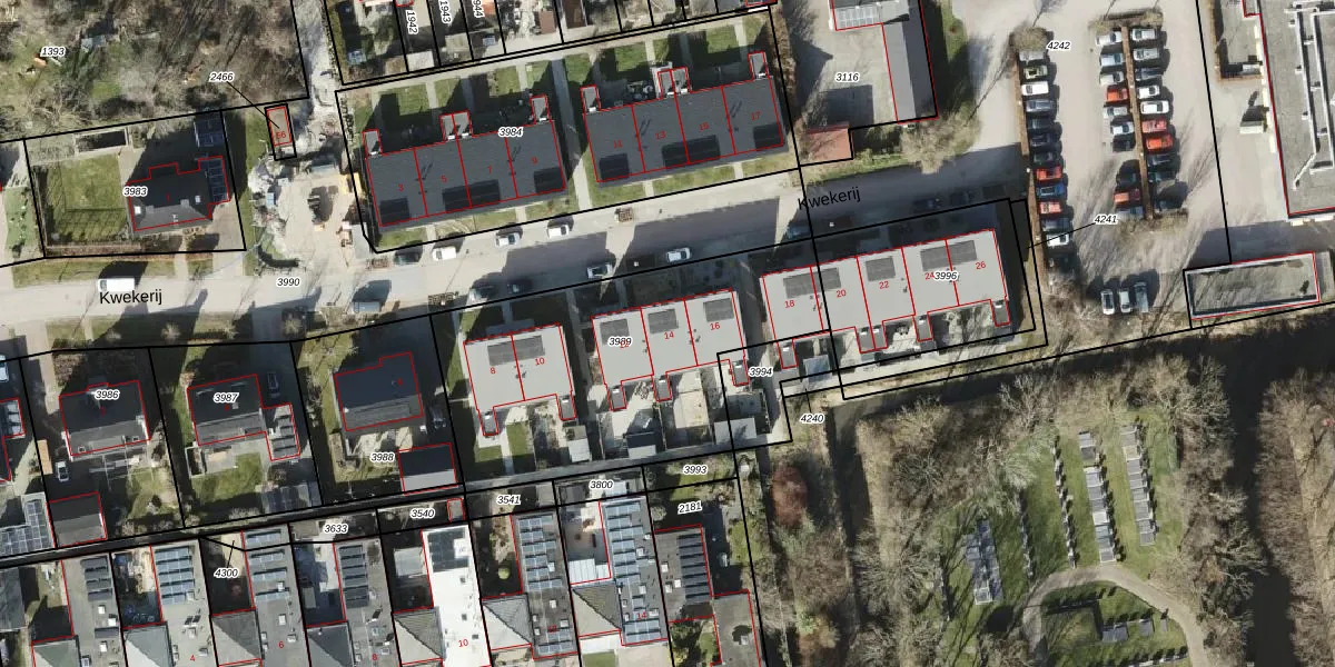 Kwekerij 14 is gelegen op kadastraal perceel BDM00K3989. Deze kadastrale aanduiding is uniek en wordt gebruikt door het Kadaster om eigendomsrechten en andere zakelijke rechten vast te leggen. Het perceel maakt onderdeel uit van de kadastrale gemeente Bedum.