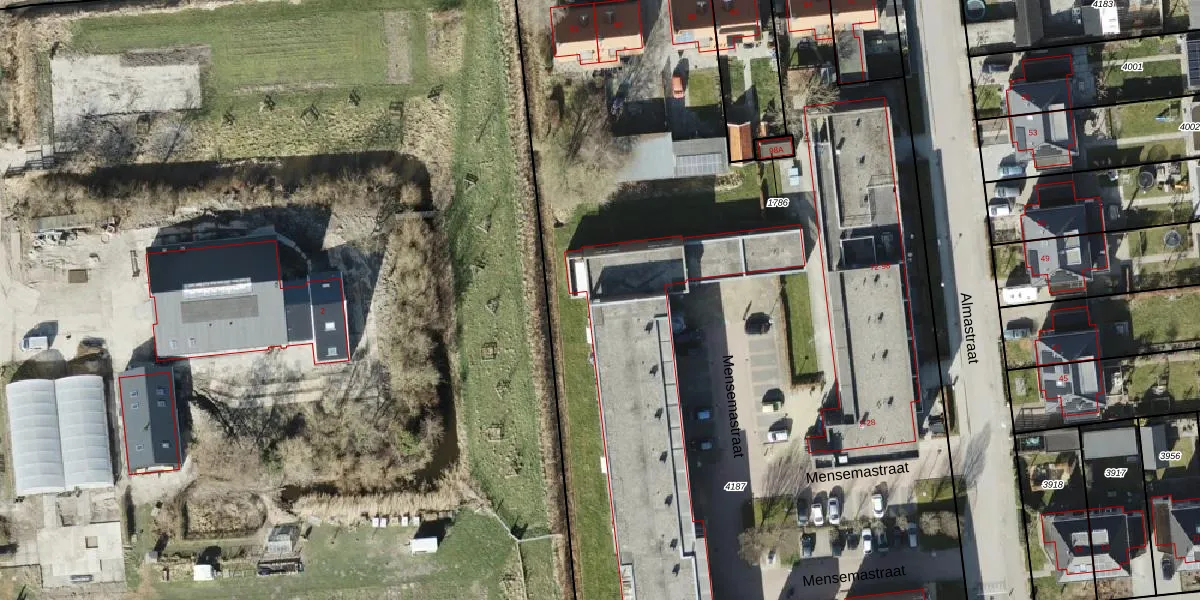 Het perceel waarop Mensemastraat 1 staat heeft een oppervlakte van 1,7 ha. Dit is een zeer groot perceel. De perceeloppervlakte wordt geregistreerd door het Kadaster. Gedetailleerde informatie over de maten van dit perceel kunt u vinden in het rapport Kadastrale kaart met maatvoering van Mensemastraat 1.