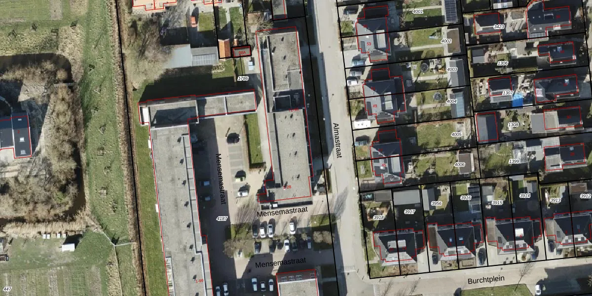 Het perceel waarop Mensemastraat 6 staat heeft een oppervlakte van 1,7 ha. Dit is een zeer groot perceel. De perceeloppervlakte wordt geregistreerd door het Kadaster. Gedetailleerde informatie over de maten van dit perceel kunt u vinden in het rapport Kadastrale kaart met maatvoering van Mensemastraat 6.