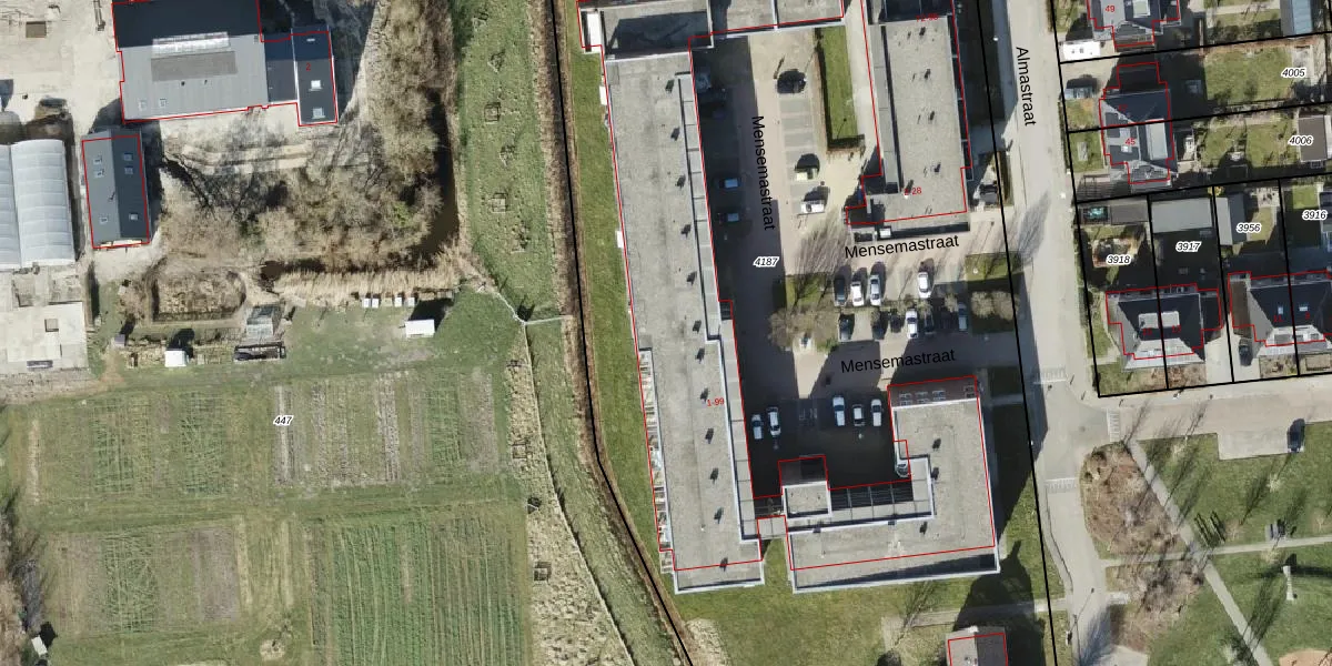 Het perceel waarop Mensemastraat 87 staat heeft een oppervlakte van 1,7 ha. Dit is een zeer groot perceel. De perceeloppervlakte wordt geregistreerd door het Kadaster. Gedetailleerde informatie over de maten van dit perceel kunt u vinden in het rapport Kadastrale kaart met maatvoering van Mensemastraat 87.